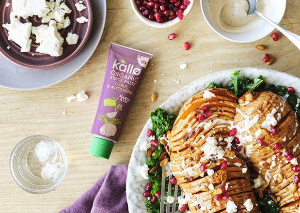 Mix 2 tbsp olive oil with the stock paste and some black pepper, rub it all over the squash then roast in the oven for 30 minutes.