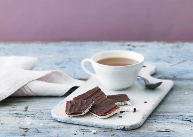 What could be better with your afternoon cup of tea than a scrummy chocolate-topped rice cake?