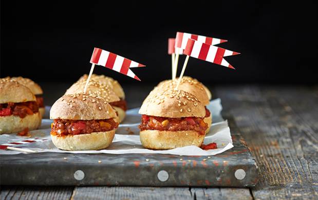 Traditionally served on burger buns, but messy. Good on jacket potatoes.